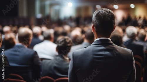 Business speaker giving a talk at business conference event. Neural network ai generated art