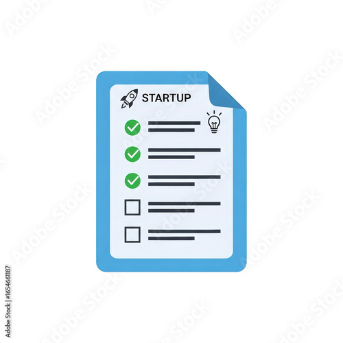 Business Startup Checklist with Rocket and Idea Icons startup business plan checklist project launch idea concept