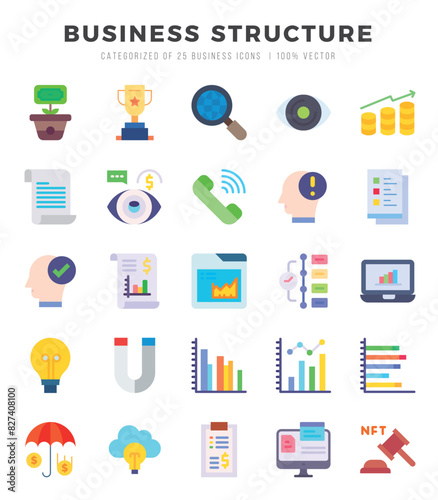 Business Structure Icons Pack Flat Style. Vector illustration.