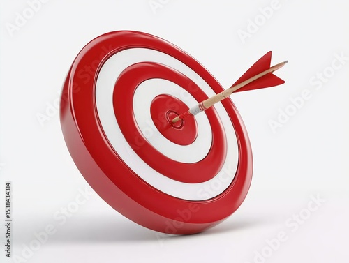 Business Target Achievement: Red and White Bullseye with Arrow Hit, Marketing Competition, Precision Goal Setting Concept Illustration