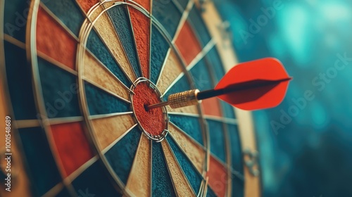 Business target with a dartboard featuring a dart in the center, representing focused strategic planning