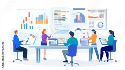 Business Team Analyzing Data Graphs Charts Meeting Presentation