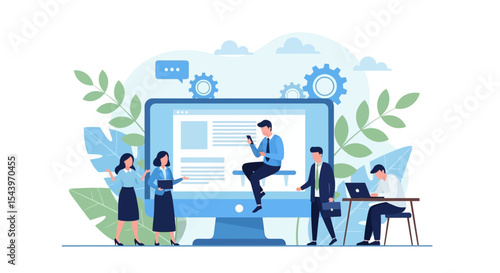 Business Team Collaboration on Digital Platform: Flat Design Illustration