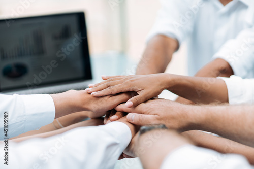 business team is showing their unity . close-up.