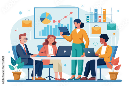 Business Team Meeting Discussing Growth Charts Diverse business team meeting reviewing data and charts business meeting teamwork collaboration presentation growth data analysis charts graphs business