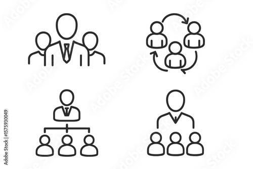 Business Teamwork and Organization Line Icons Set. Human Resource Management, Leadership, Team Structure, Collaboration, Hierarchy, Business People, Corporate Communication, Outline Vector