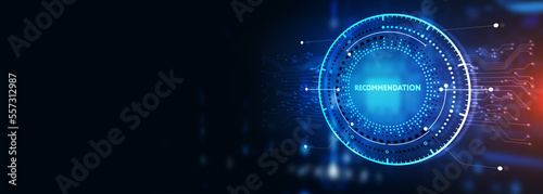 Business, Technology, Internet and network concept. The word Recommendation on the virtual screen. 3d illustration