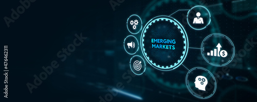 Business, Technology, Internet and network concept. virtual screen of the future and sees the inscription: Emerging markets. 3d illustration