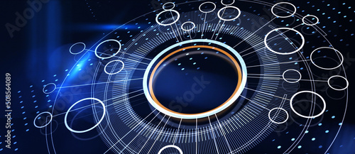 Business, technology, internet and virtual reality concept - button on virtual screen. 3D illustration.