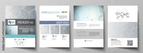 Business templates for brochure, magazine, flyer, booklet. Cover design template, vector layout in A4 size. Chemistry pattern, connecting lines and dots, molecule structure, medical DNA research.