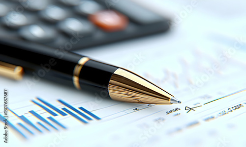 Business Tools on Table with Pen, Calculator and Graph Paper