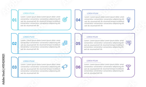 Business vector infographic design template with icons and 6 options or steps. Can be used for process diagram, presentations, workflow layout, banner, flow chart, info graph
