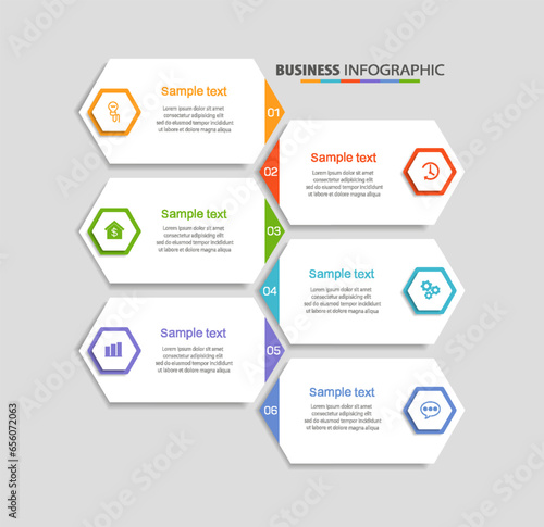 Business vector infographic design template with icons and 6 options or steps. Can be used for process diagram, presentations, workflow layout, banner, flow chart, info graph