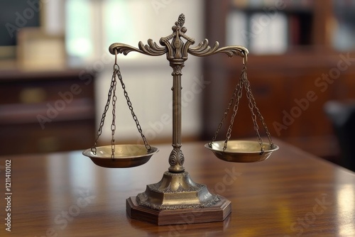 Business woman and lawyers discussing contract papers with brass scale on wooden desk in office. Law, legal services, advice, Justice concept., Generative AI