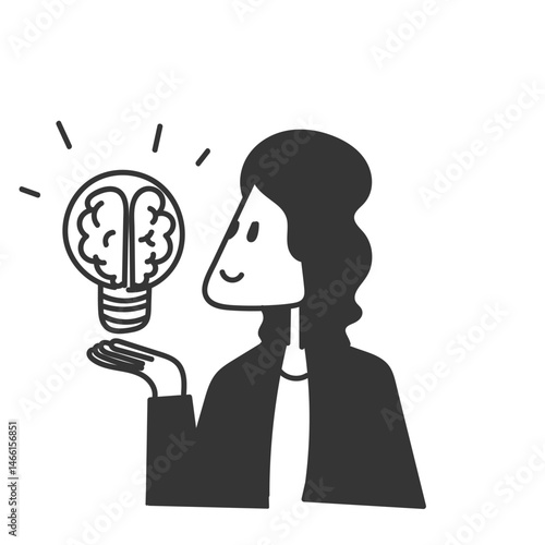 business woman holding brain light bulb illustration
