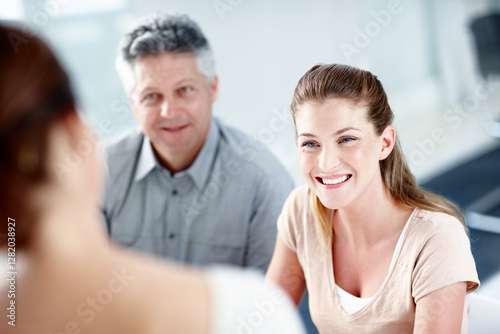 Business woman, smile and team discussion, problem solving and pitch proposal for news. Meeting, cooperation and planning with journalist for ideas, story update and internship in creative startup