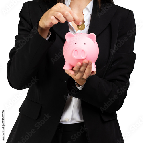 Business woman with piggy bank and euro
