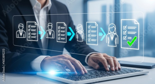 Business Workflow Visualization with Icons and Checklist Interface – Digital Process Management Concept