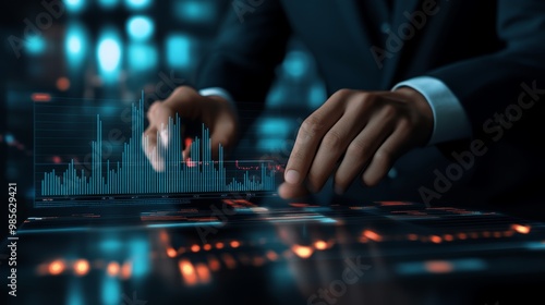 Businessman Analyzing Financial Data on Hologram Screen