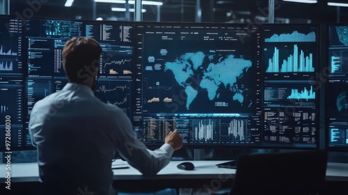Businessman analyzing stock market data on computer screen. Business and finance concept.
