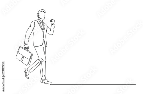 Businessman caryying briefacase in continuous one line drawing. Simple line art illustration of businessman with briefacase. Editable vector.