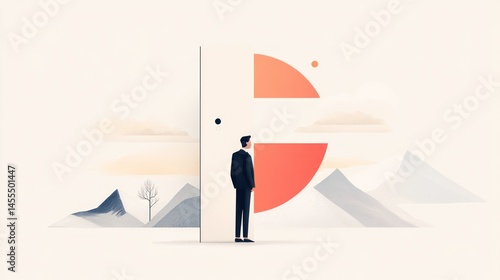Businessman facing a graphic, outdoors setting