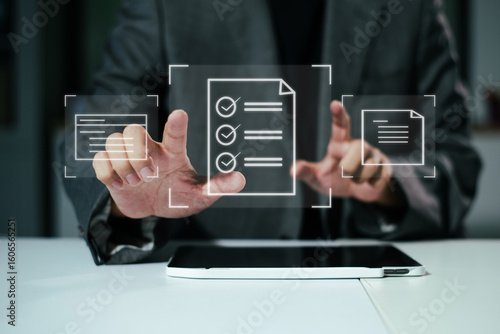 businessman hand working with new modern computer and writing on the notepad strategy diagram