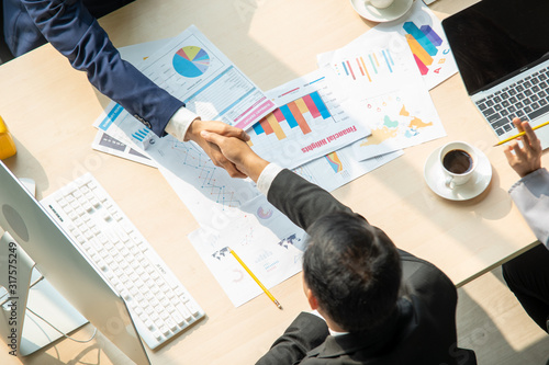 Businessman making handshake in the office,confident Business handshake and business people after discussing good deal of Trading contract,success, partnership, co worker.