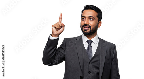 Businessman pointing up concept idea solution strategy success professional leadership isolated suit on transparent background