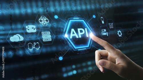 businessman pressing virtual button API, application programming interface. cloud computing concept, cloud technology, Saas, Paas, Iaas. AWS Services