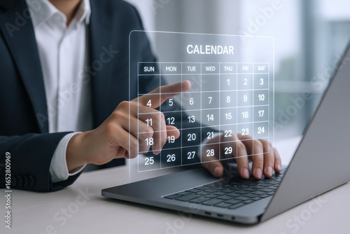 Businessman Scheduling Appointments Using Digital Calendar on Laptop for Effective Time Management and Planning