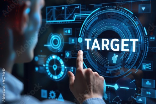 Businessman selecting virtual target for online course and marketing strategy.