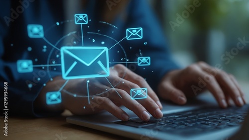 Businessman sending email by laptop. Online people network. Using internet for communication.