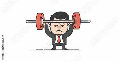 Businessman Struggling with Heavy Barbell