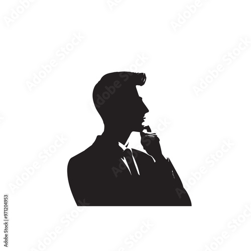 Businessman thinking vector illustration. Professional man silhouette. Businessman thinking logo, icon black and white.