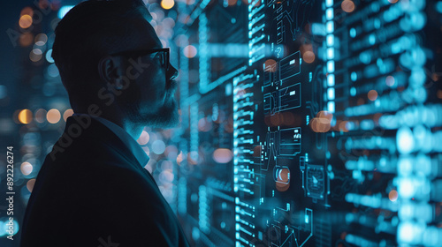 Businessman using AI technology for cybersecurity enhances threat detection and response capabilities