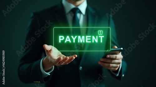 Businessman using his finger to press a virtual button on a touchscreen for a successful business solution