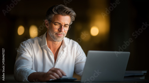 Businessman Using Laptop and Calculator for Tax Return Completion