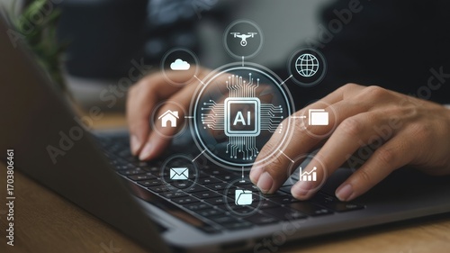Businessman using laptop with ai technology for business solution
