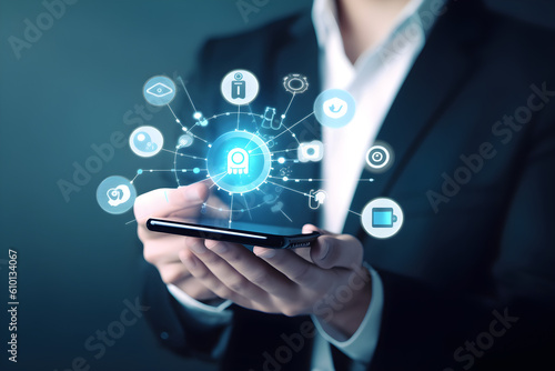 Businessman using smartphone with virtual healthcare icons on mobile web technology