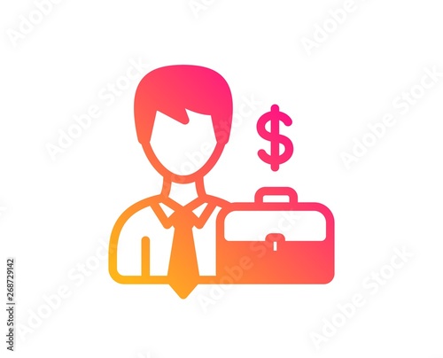 Businessman with Case icon. Diplomat with Dollar sign. Classic flat style. Gradient businessman case icon. Vector