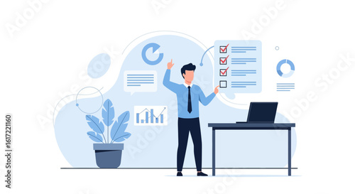 Businessman With Checklist Analyzing Growth Chart For Company Presentation