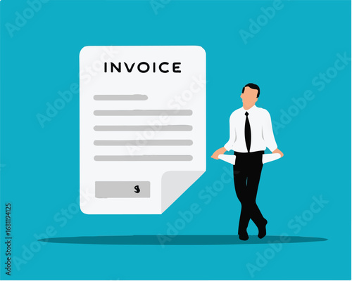 Businessman with Empty Pockets and Large Invoice – Financial Struggle Concept
