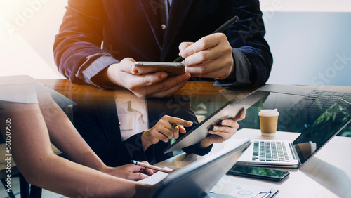 Businessman working at office with documents on his desk, doing planning analyzing the financial report, business plan investment, finance analysis concept