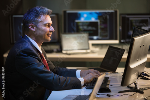 Businessman Working On Multiple Computers