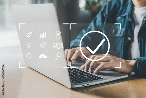 businessman working with computers service Quality assurance, Guarantee, Standards, ISO .
