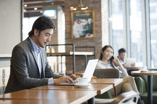 Businessman working with laptop in caf_