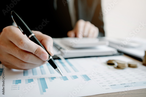 Businessmen are calculating the cost of the company's sales and analyzing the graph in the office.