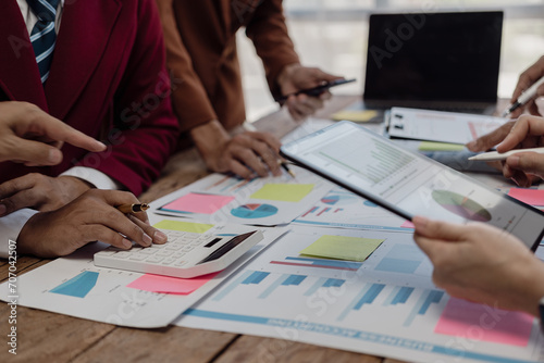 Businessmen brainstorm and work together on finance and marketing of new business, company meeting discuss planning Working in an organization and analysis of business strategies, close-up images