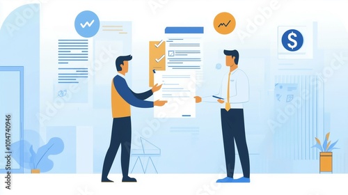 Businessmen discussing financial and strategic planning with charts and documents in modern office setting